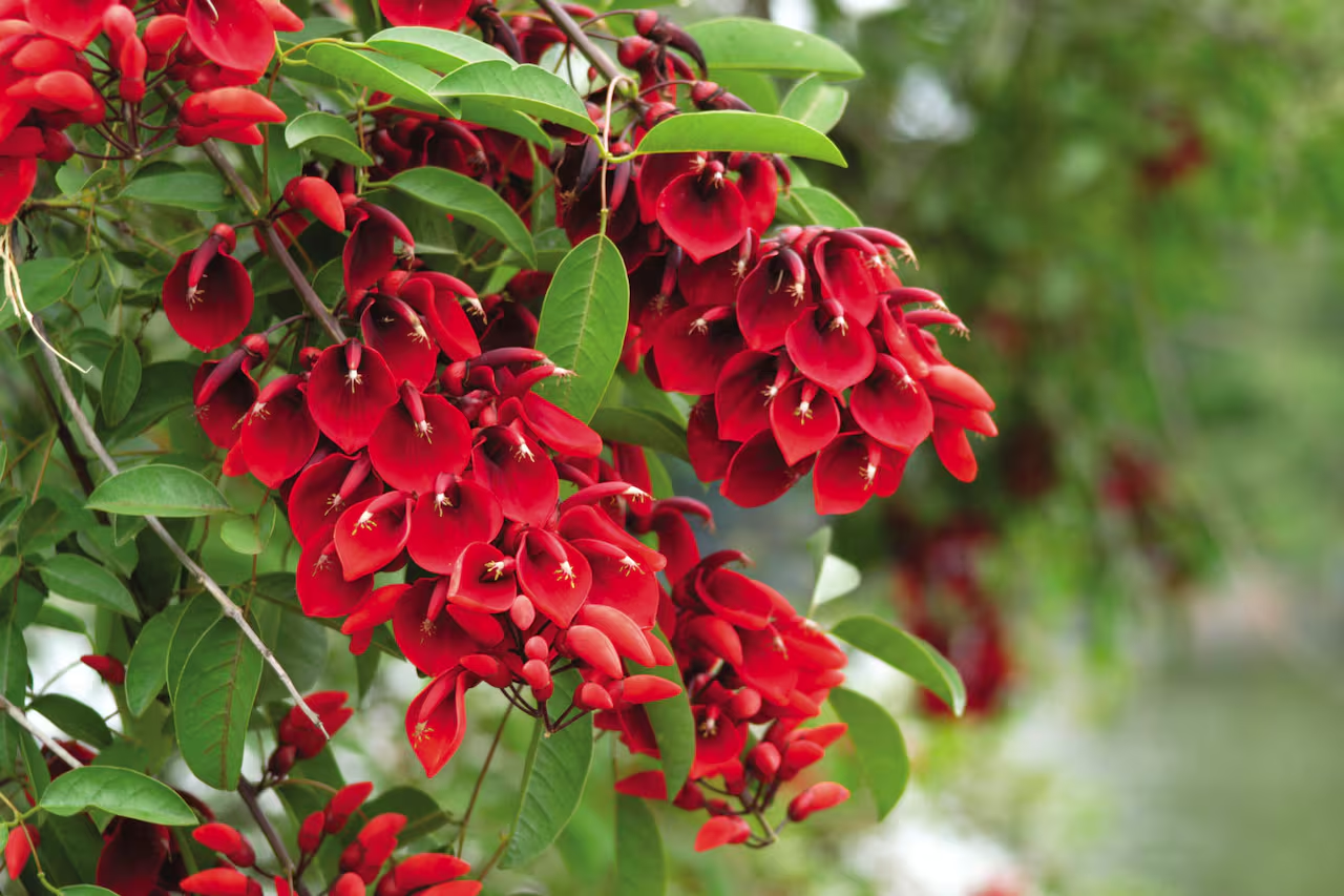Árbol nacional de gran valor ornamental por sus flores rojas llamativas; resiste climas cálidos y templados.