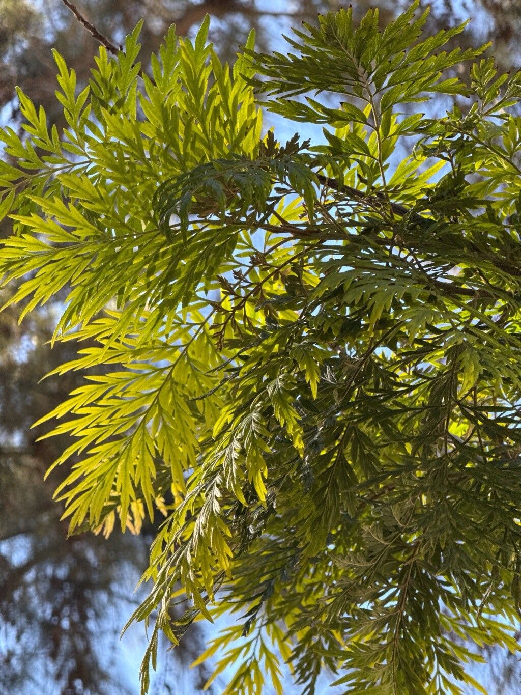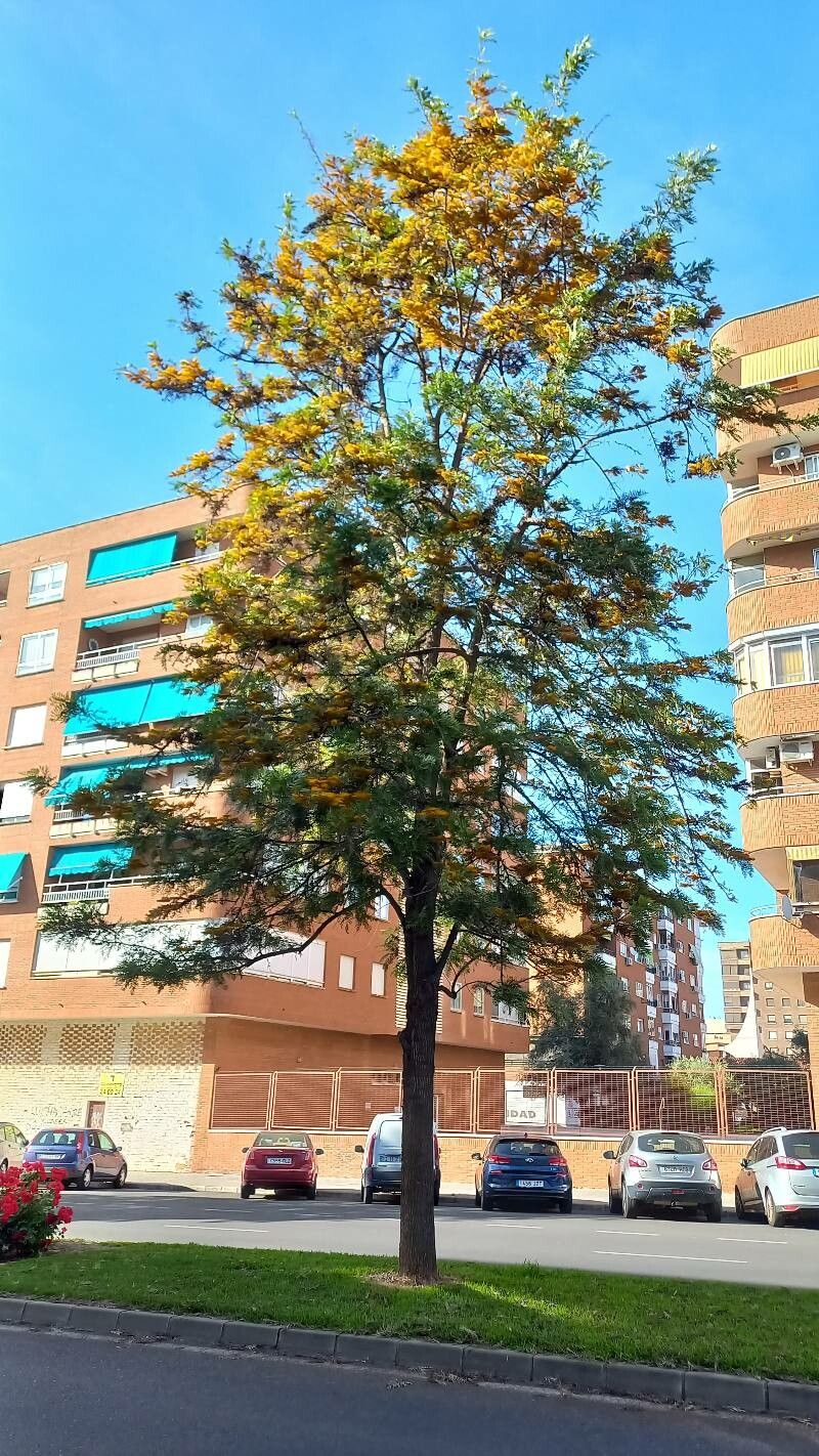 Árbol de crecimiento rápido y porte elegante, con follaje fino y plumoso de tono verde plateado. En primavera produce racimos de flores anaranjadas muy llamativas que atraen aves y abejas. Ideal como ejemplar aislado o para cortinas rompeviento.