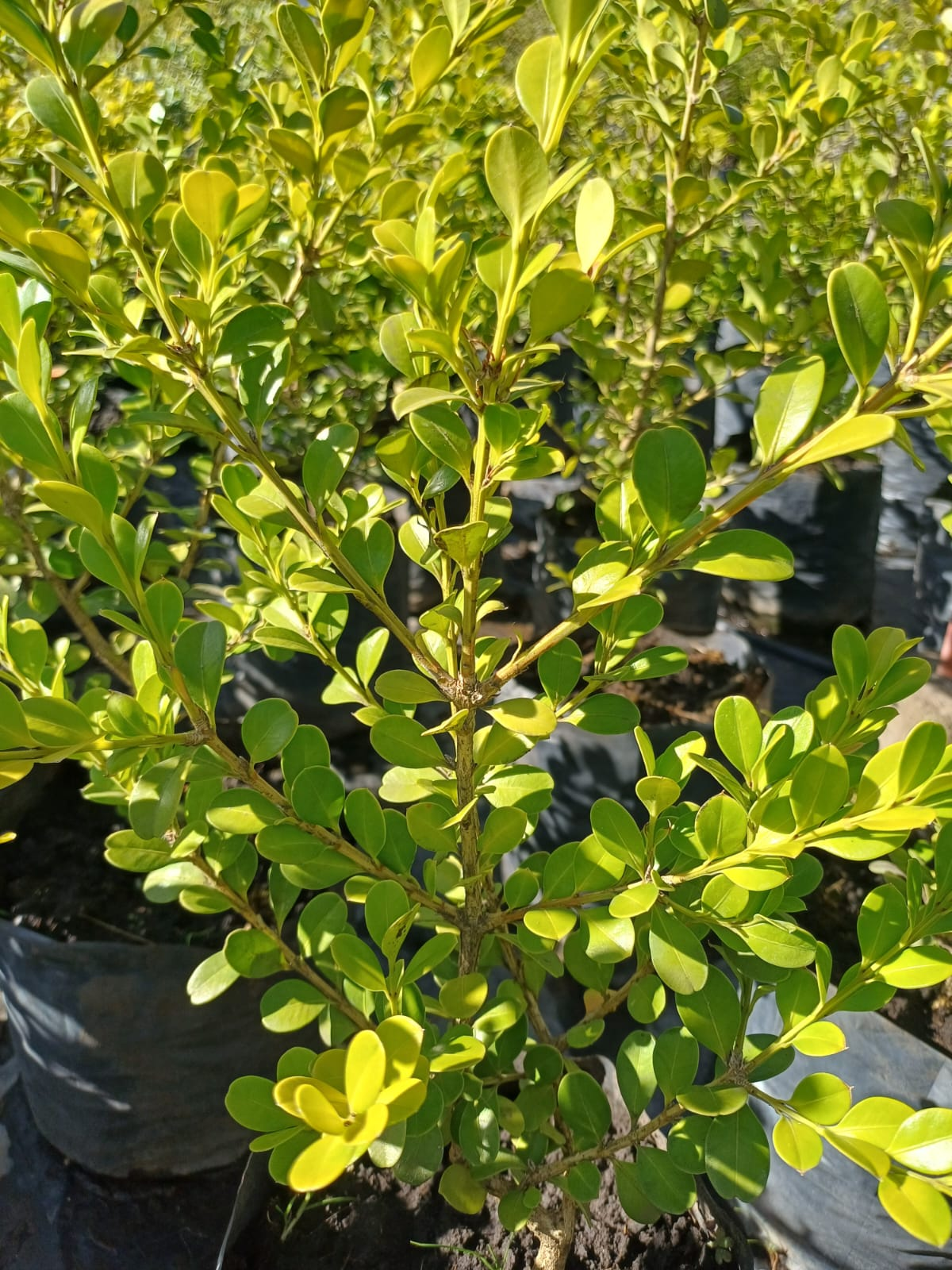 Arbusto perenne de crecimiento lento, muy utilizado en jardinería formal por su capacidad de ser podado en formas compactas y precisas. Su follaje denso y pequeño lo hace ideal para borduras, topiarias y setos bajos.