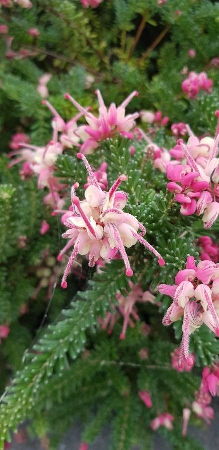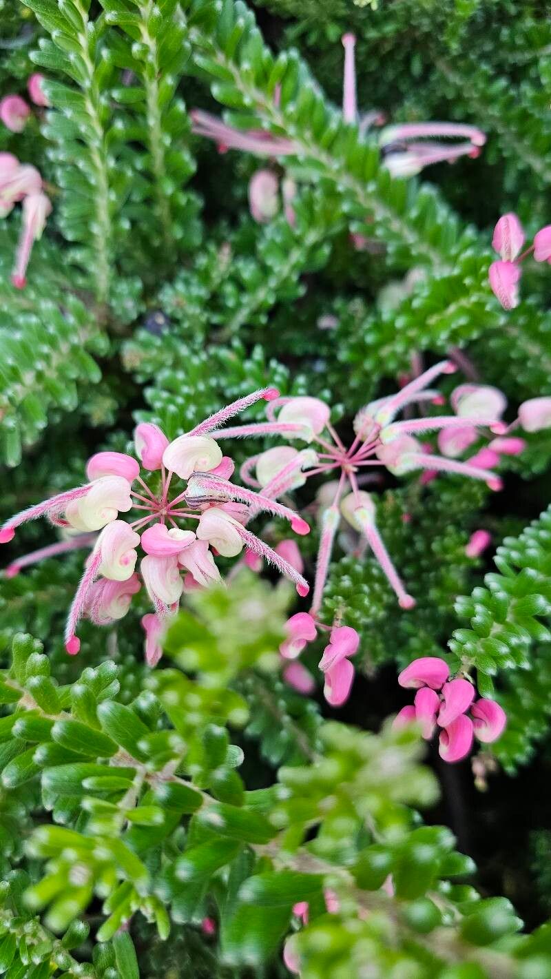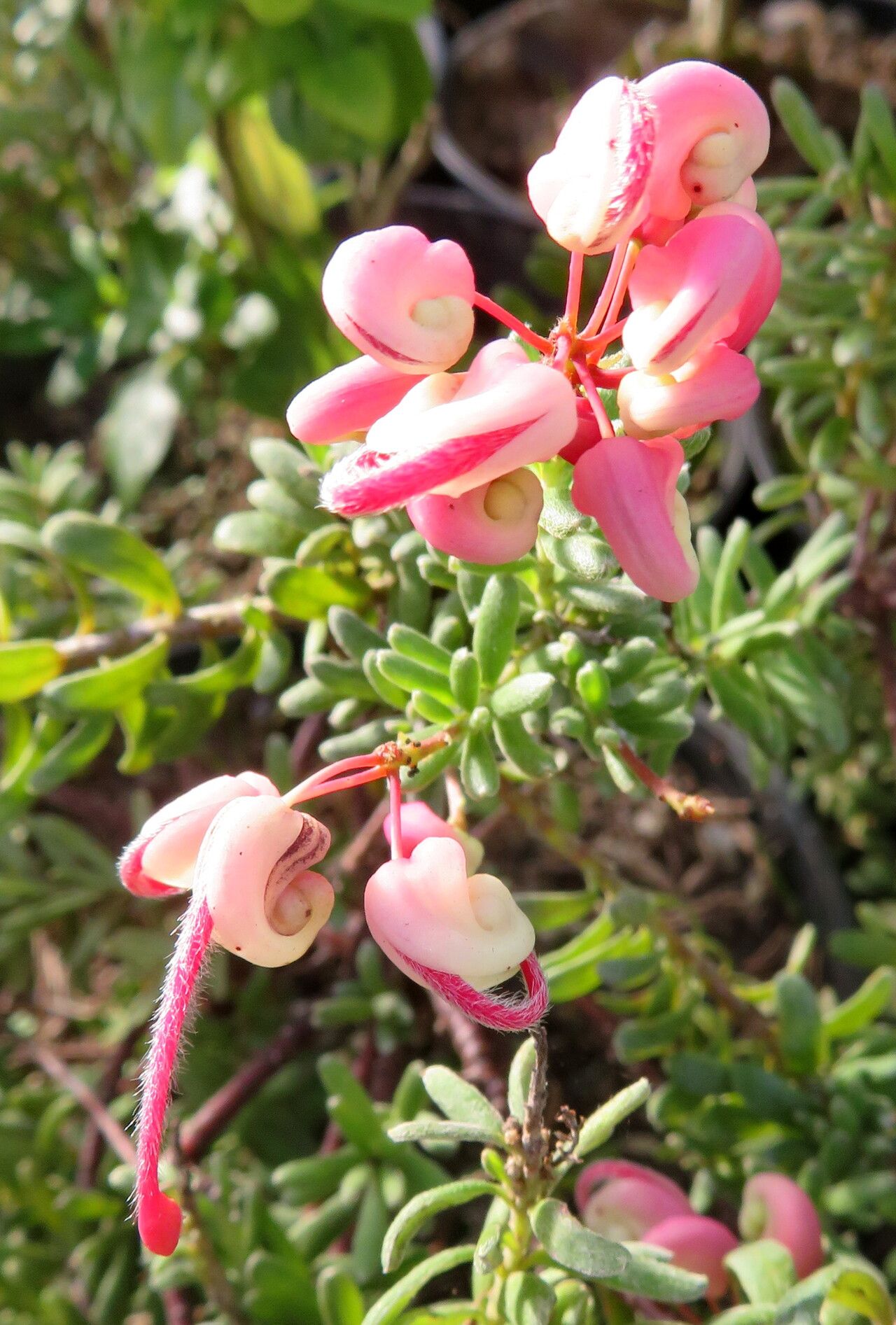 Arbusto perenne y rastrero, originario de Australia, muy apreciado por su follaje fino y sus flores exóticas. Forma matas compactas de unos 0,5 m de altura y hasta 2 m de diámetro, con hojas pequeñas y suaves de tono verde grisáceo. Florece gran parte del año, especialmente en primavera y verano, con inflorescencias rosadas o rojizas muy atractivas para abejas y aves.