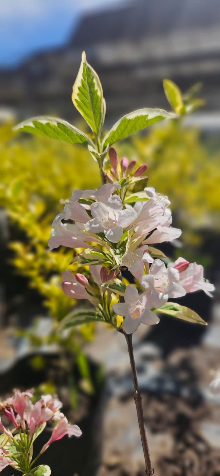 Arbusto ornamental de hoja caduca, originario de Asia oriental, muy valorado por su abundante floración primaveral. Forma una mata redondeada y densa, con ramas arqueadas que pueden alcanzar entre 1,5 y 2,5 m de altura. Sus flores, en forma de campanilla, aparecen en racimos y varían del rosa suave al fucsia intenso o blanco, atrayendo abejas y colibríes.