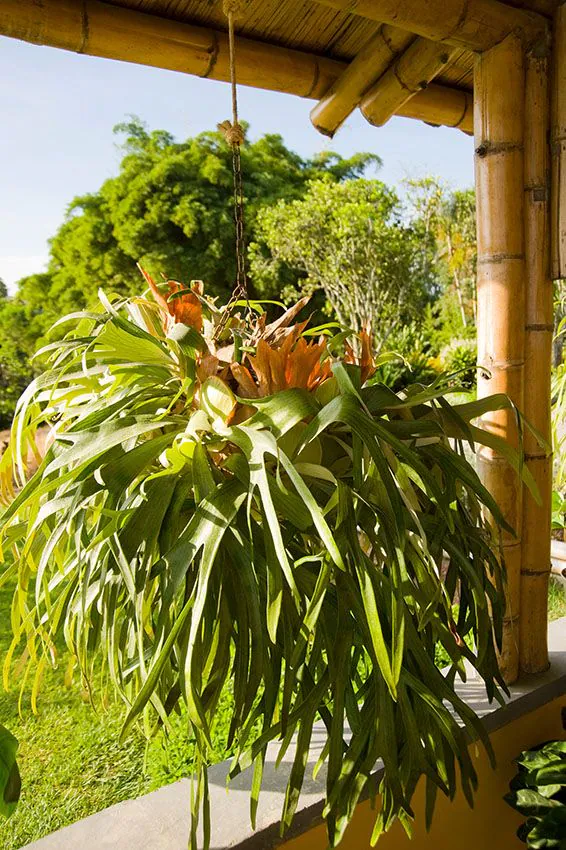 Helecho epífito de frondas ramificadas que recuerdan a cuernos de alce, muy decorativo y resistente.