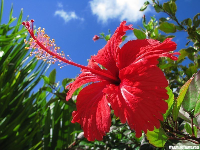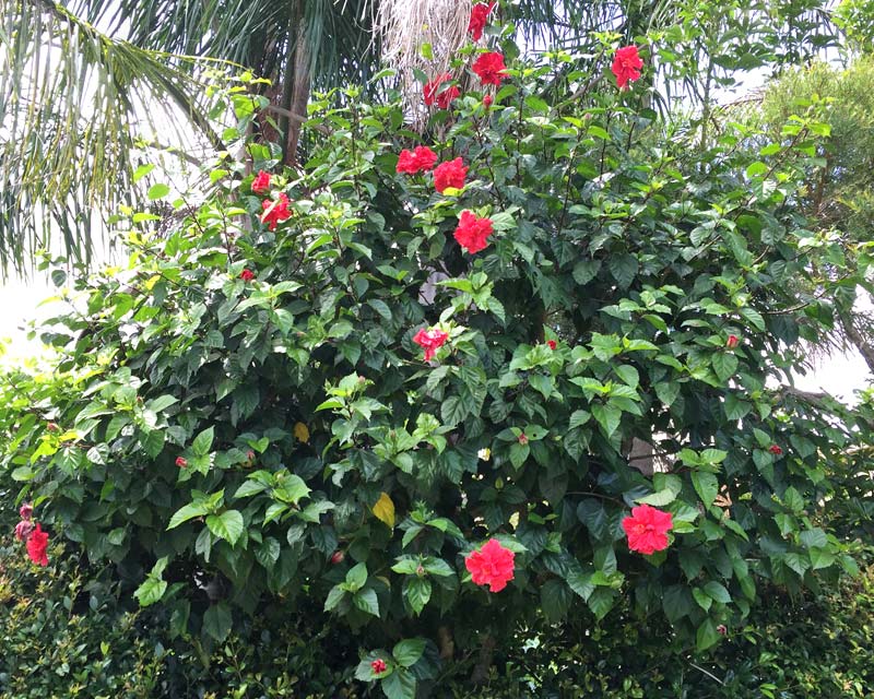 Rosa de China, Hibisco, Pacífico, Cardenales o Flor del beso es un arbusto perennifolio con una altura de hasta 5 metros (menor en una maceta). Es una especie muy cultivada por la belleza de sus flores de un precioso color escarlata de cuyo centro salen largos estambres con antenas amarillas. En climas tropicales o subtropicales la floración es continua durante todo el año; en climas continentales su floración ocurre en verano. Necesita mucha luz y un suelo fértil, húmedo y bien drenado.