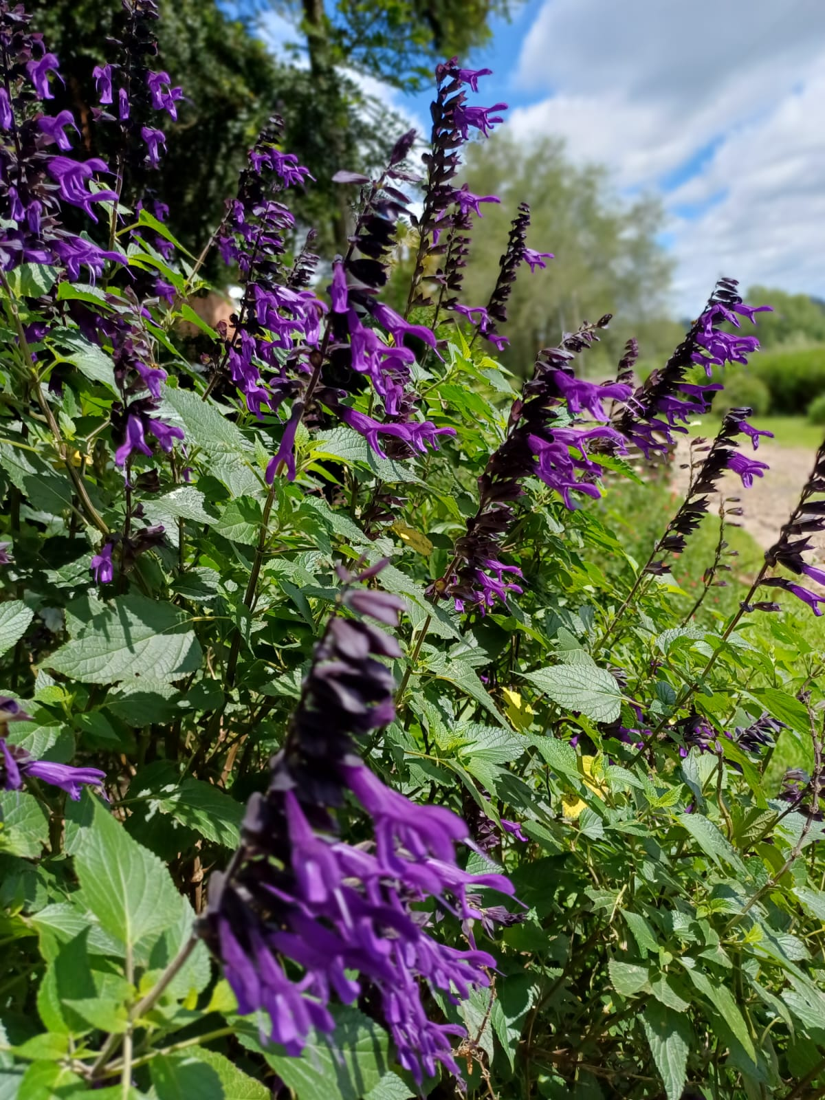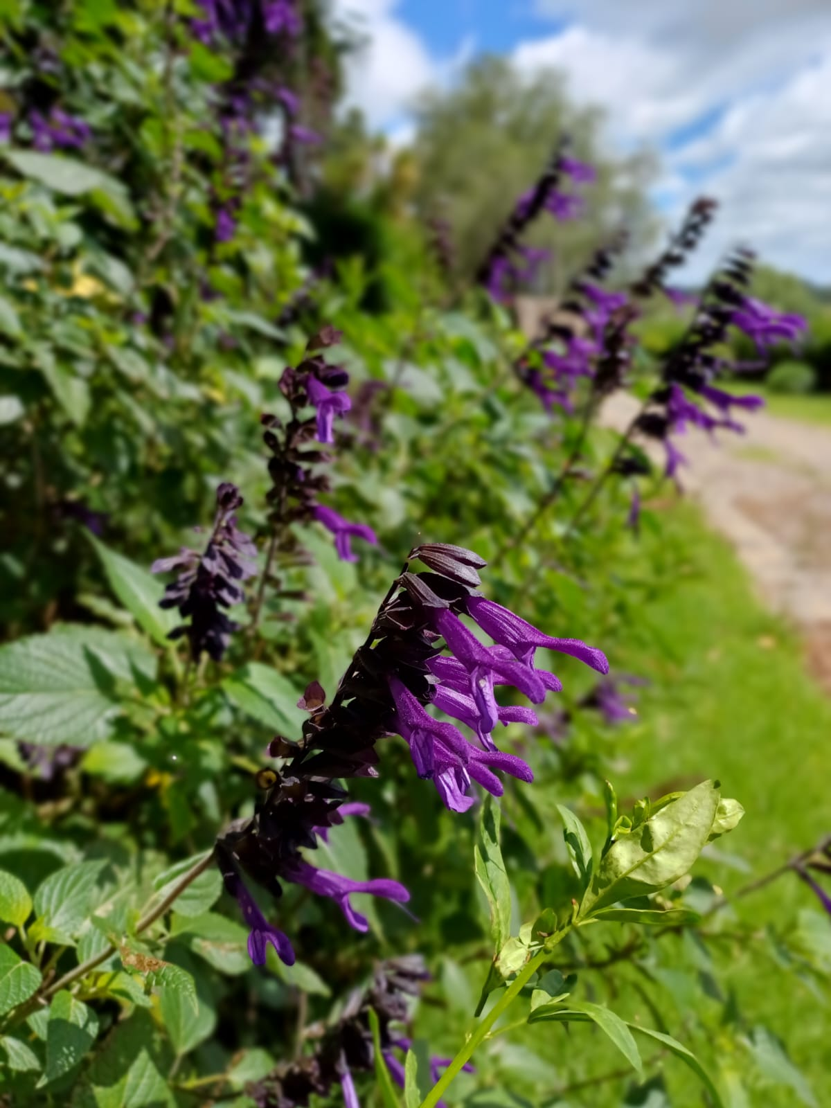 Herbácea perenne con varas altas y flores azul profundo muy aromáticas, ideal para atraer colibríes.