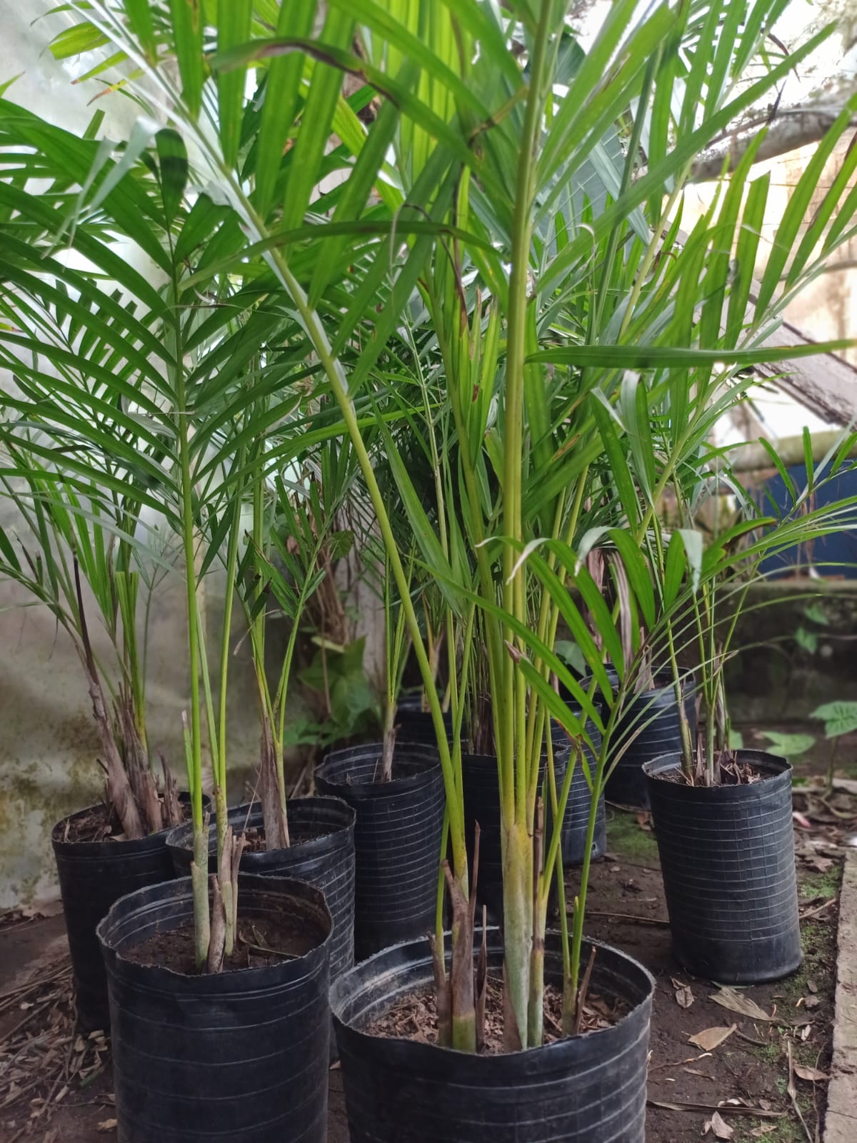 Palmera de interior o exterior resguardado, con múltiples tallos dorados y hojas plumosas de intenso verde. Muy usada como planta decorativa.