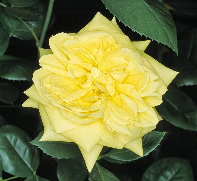 Rosa de color limón suave con centro brillante.