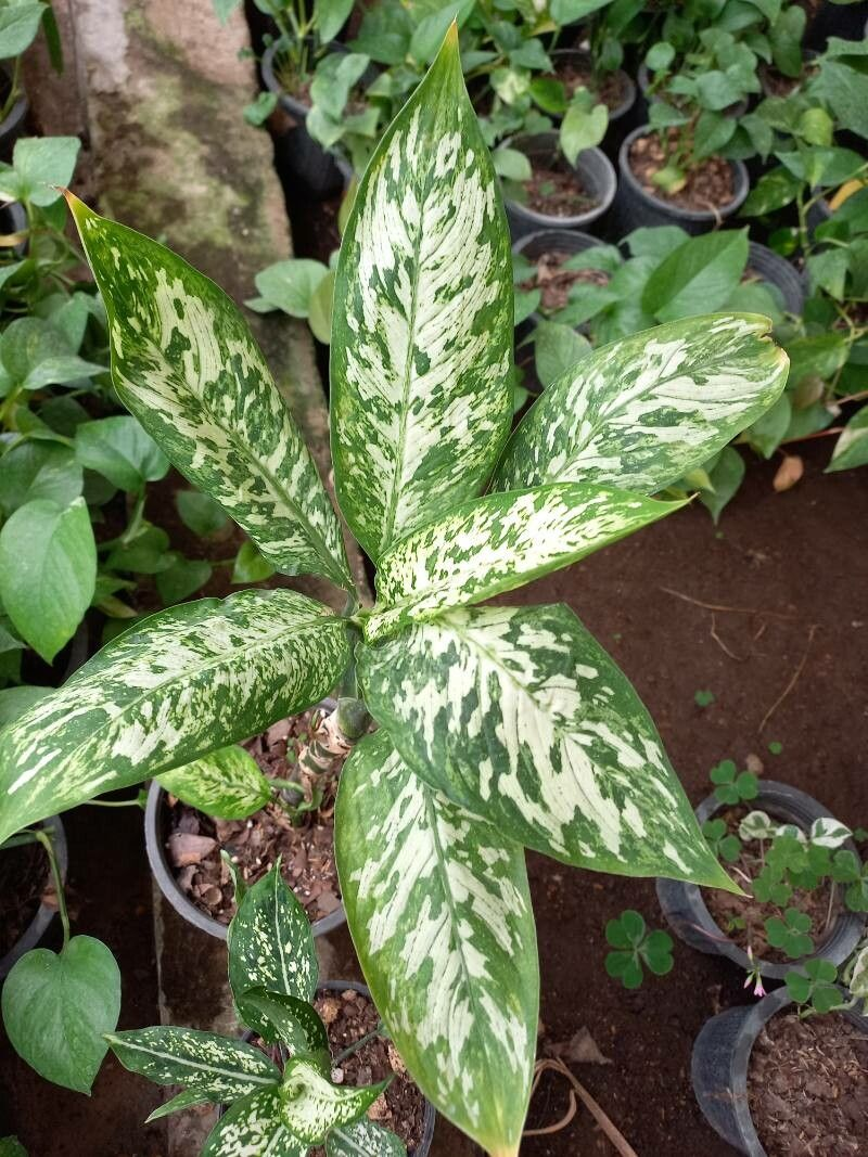 Variedad de Aglaonema con hojas verdes oscuras y vetas plateadas, muy resistente y ornamental para interiores.