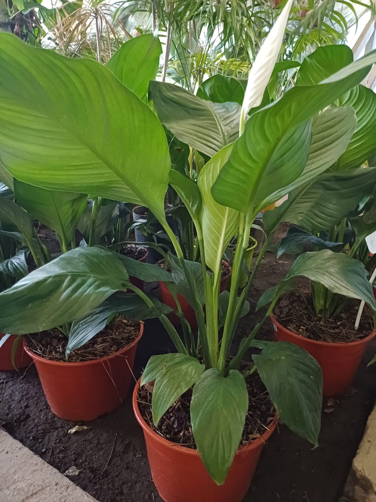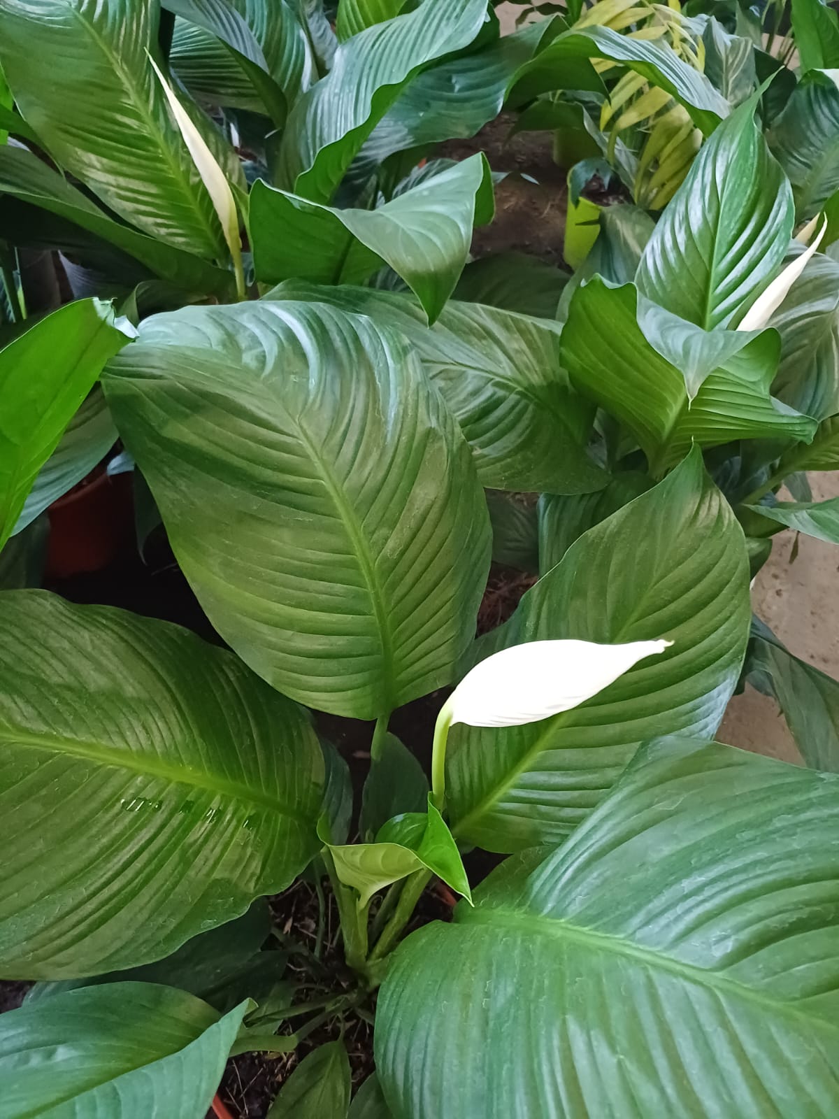 Planta de interior muy popular por sus hojas brillantes y flores blancas elegantes, conocida por purificar el aire.